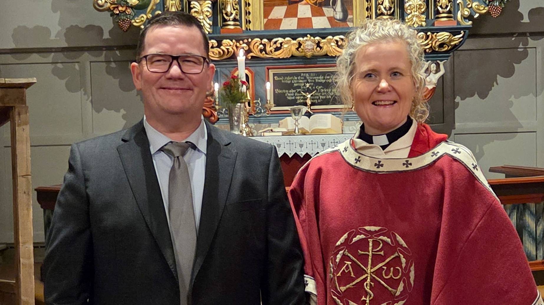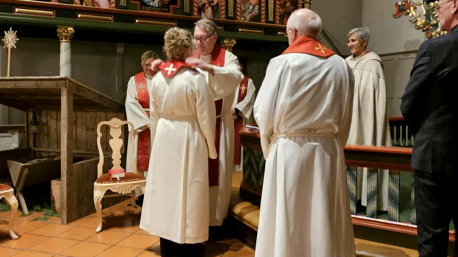 Sissel Muan får stolaen satt på av prost Dagfinn Thomassen