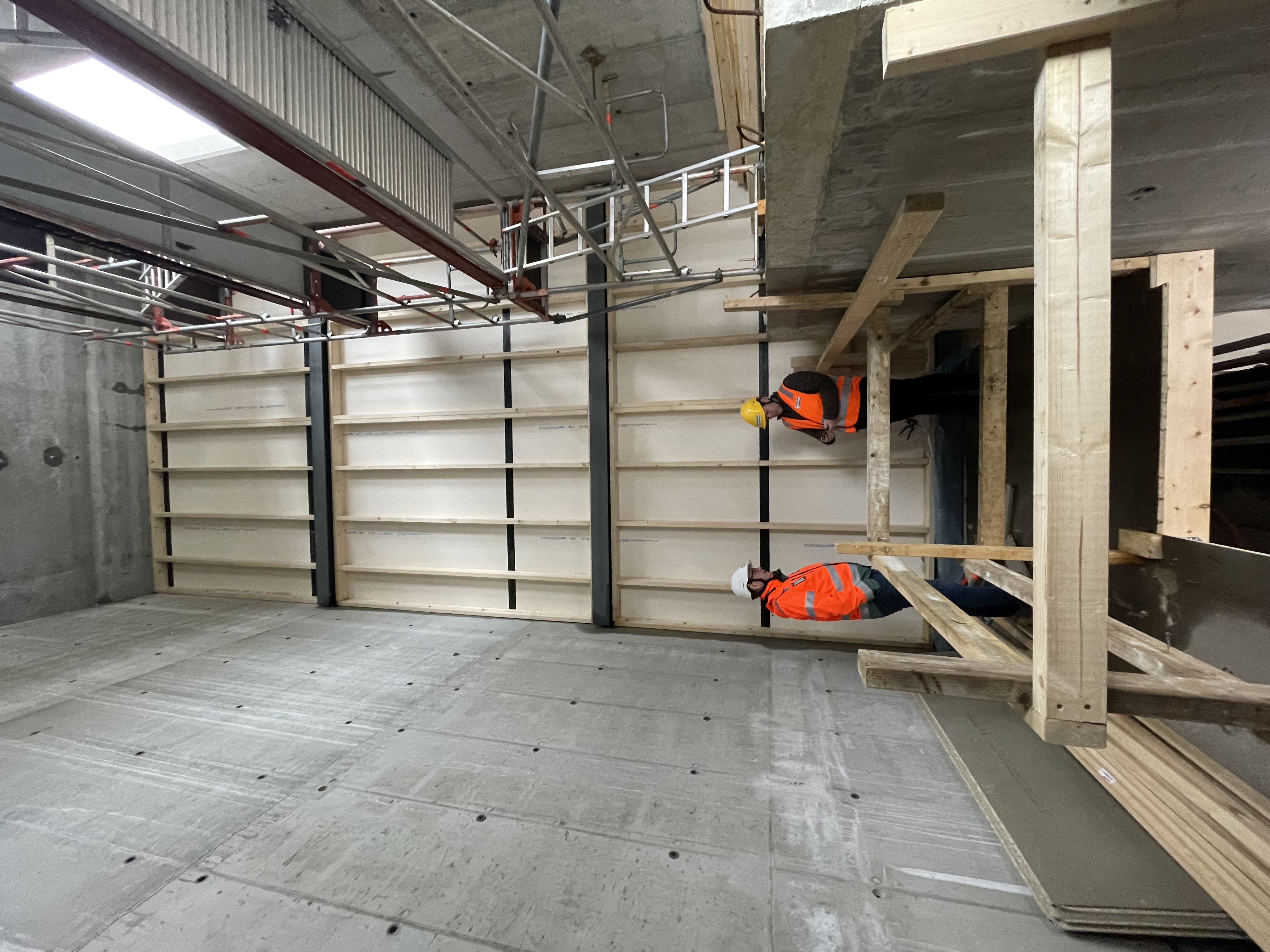 I klokketårnet planlegger vi å bygge klatrevegg. Der stilaset står på bilde vil det bli bygd en vegg som skal romme kirkeklokker og litt ventilasjon. I det rommet mennene i gule vester står vil det bli bygget klatrevedd fra det nivået menneskene står til toppen av bilde. Det er aktive klatrere i lokalmijøet som er med å utarbeide klatrerommet. Dette blir et kjekt rom for alle aldre.