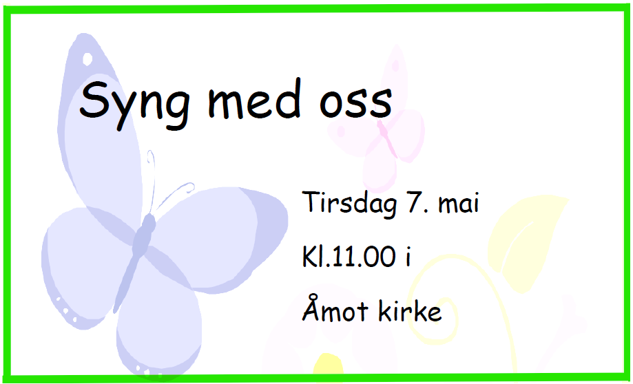 Tirsdag 7. mai kl. 11.00 samles vi i Åmot kirke til en trivelig sangstund.