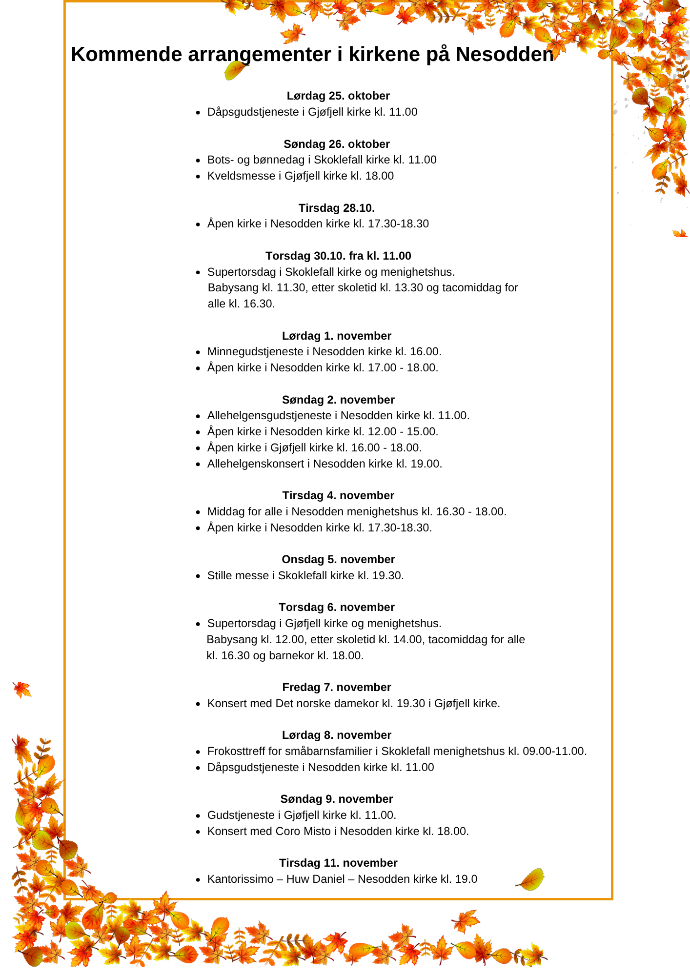 Kommende gudstjenester og arrangementer i kirkene på Nesodden