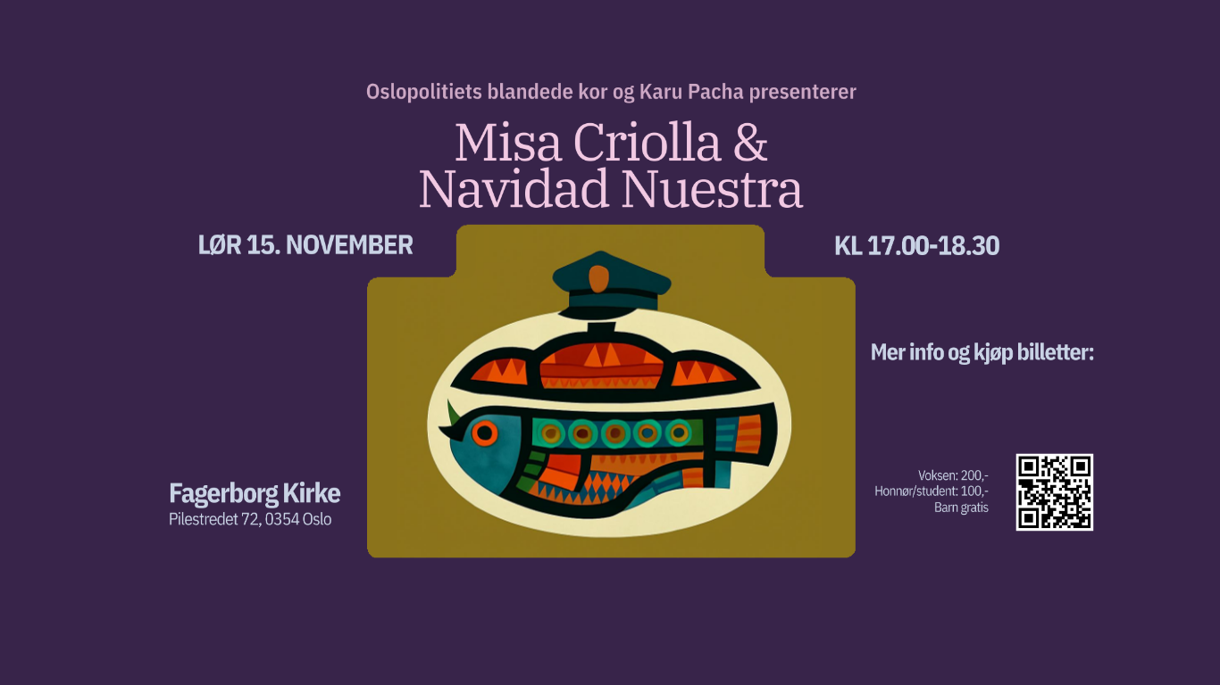 Med oss har vi Oslopolitiets blandede kor og folkemusikkensemblet Karu Pacha med base i Peru.🎶