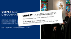14.11.2022Pga. sykdom utgår vesper med Consortium Vocale Oslo, men det blir fredagsmesse som vanlig kl. 17.00