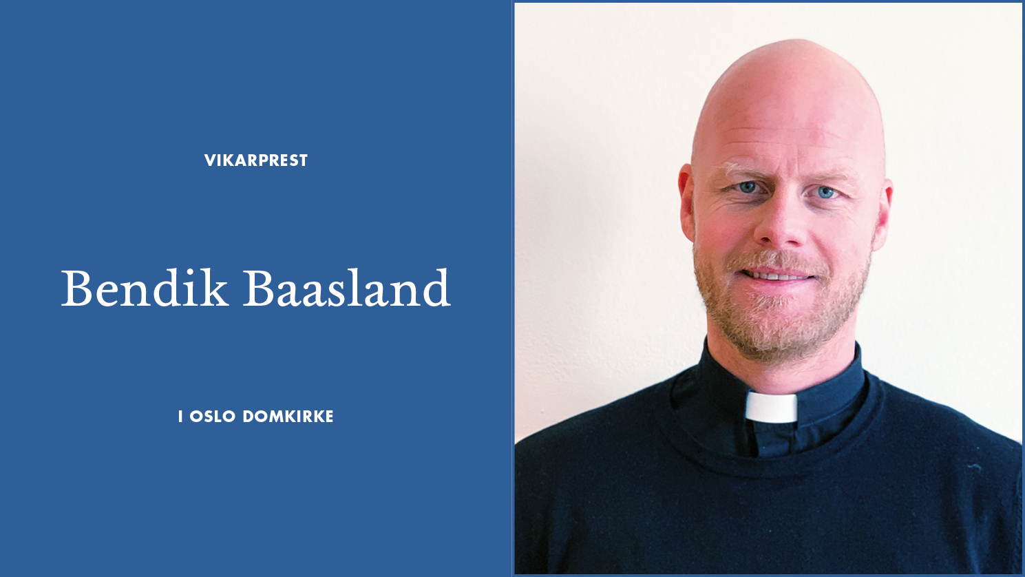 6.12.2019Bendik Baasland gjør tjeneste som vikarprest i Oslo domkirke i perioden november 2019 - mars 2020.