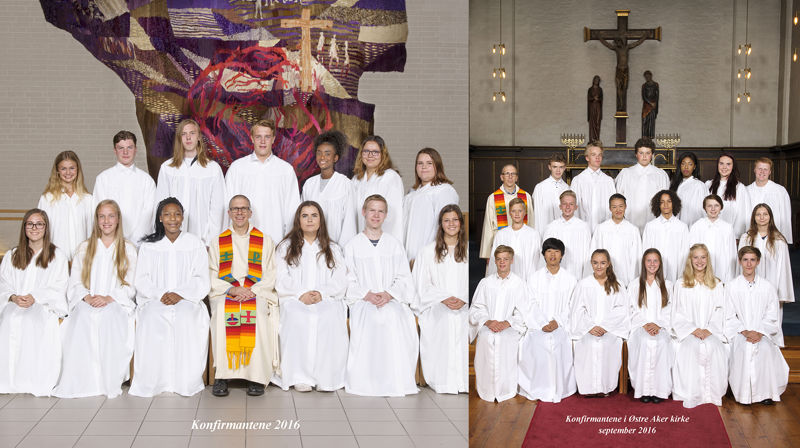 Så er konfirmasjonstiden over for denne gang. Det var konfirmasjonsgudstjeneste i Haugerud kirke lørdag 10. september 2016 og i Østre Aker kirke søndag 11. september i fint høstvær.