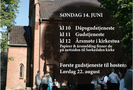 3.6.2020Søndag 14. juni er det endelig gudstjeneste igjen i Sørkedalen kirke.