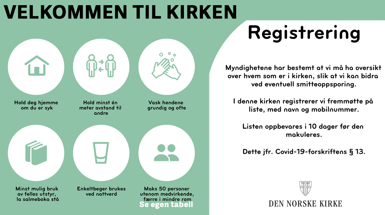 18.5.2020Vi gleder oss til igjen å åpne kirken for gudstjenester. Det har vært et savn for mange.