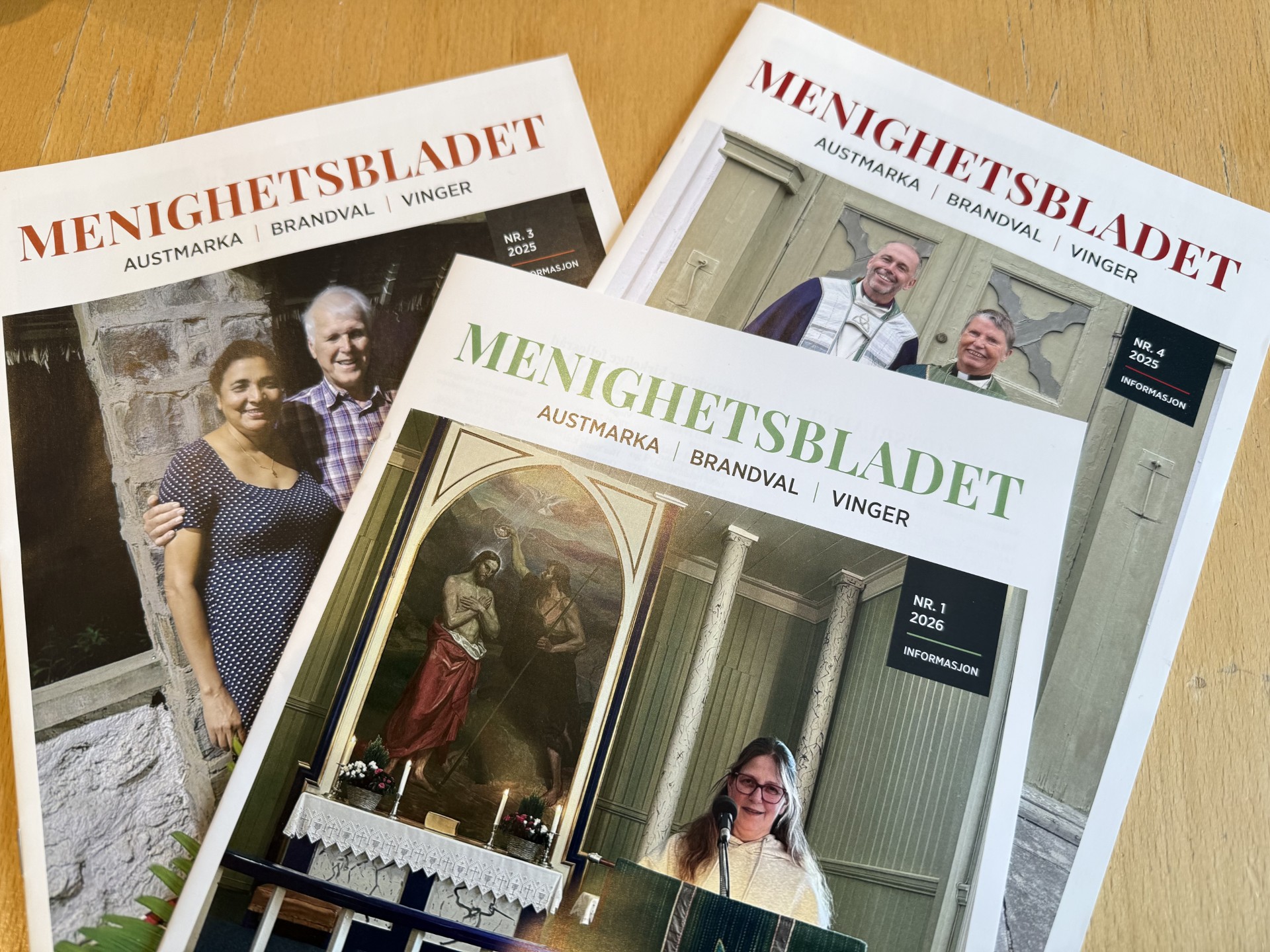 Menighetene i Kongsvinger har hatt ett felles menighetsblad siden 2021. I bladet finner du stoff fra alle våre menigheter: Austmarka, Brandval og Vinger. Bladet blir delt ut i postkassene etter Postens rutiner. Hvis du ikke har fått bladet, ligger siste utgave tilgjengelig i alle kirkene. Ta gjerne kontakt med oss dersom du mangler bladet. Den nyeste utgaven ligger øverst på siden, og alle utgaver kan lastes ned som PDF. Menighetsbladet er viktig for oss, men det koster å lage. Vi er derfor takknemlige for alle som ønsker å støtte bladet. Du kan gi en gave via Vipps til nummer 743083. Et årsabonnement er beregnet til 295 kroner. På forhånd tusen takk for støtten!