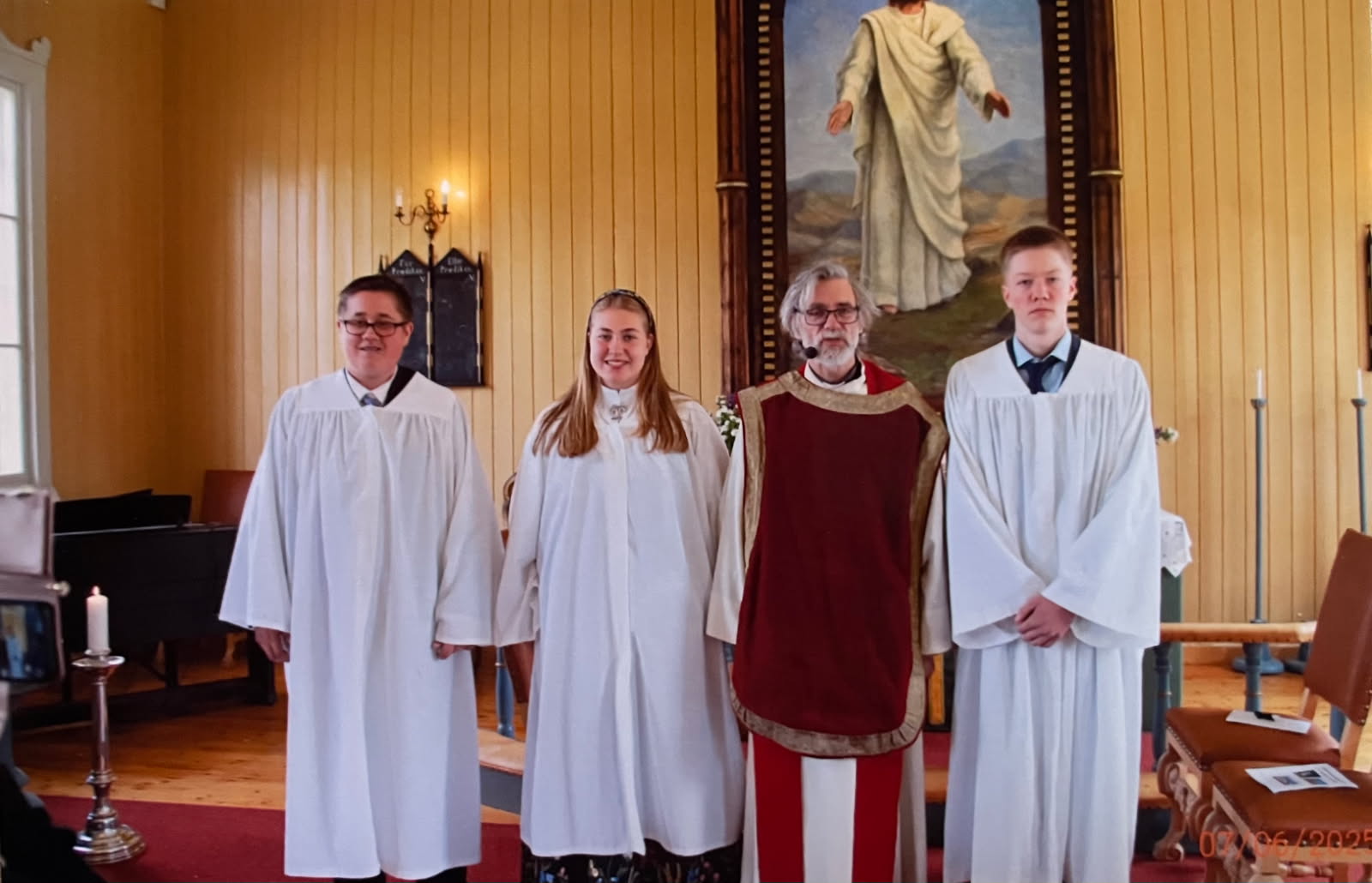 Alfred Roksvold, Benjamin Jensen, Ole Vidar Kristiansen, Pernille Skarstad, Sandra Seigerud Olsen. Prester: Yrjan Mirzai Sandnes og Morten Ruud.