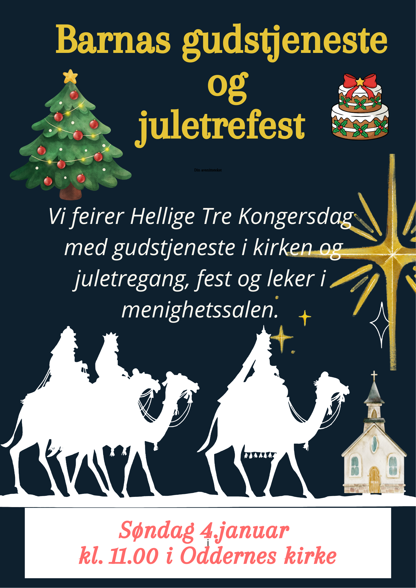 Velkommen til Barnas gudstjeneste i kirken og juletrefest i menighetshuset søndag 4. januar