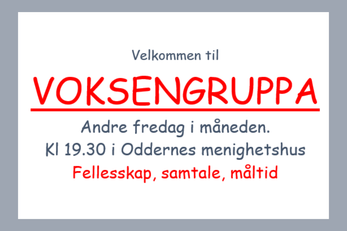 Velkommen til samling med Voksengruppa 10. oktober kl. 19.30 i Oddernes menighetshus.