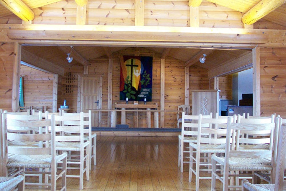 I kjelleren er det peisestue, kjøkken og 8 sovealkover. Lag og foreninger kan derfor leie kirken til overnattingsturer.