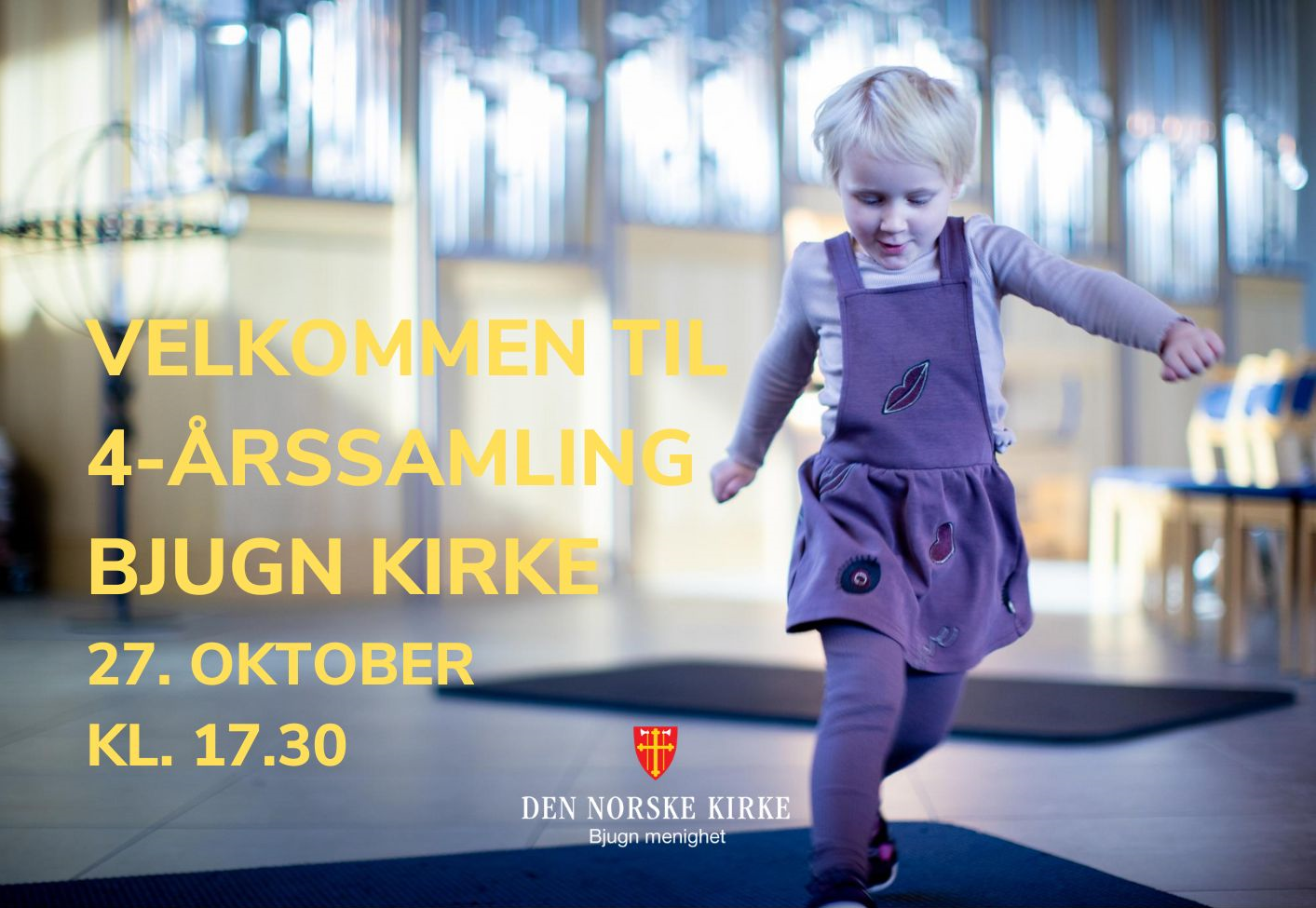 Velkommen til 4-årssamling og barnegudstjeneste i Bjugn kirke Torsdag 27. oktober kl. 17.30