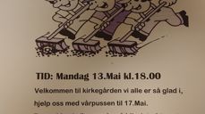 10.5.2024På mandag 13. mai er den årlige dugnaden på kirkegården fra kl. 18