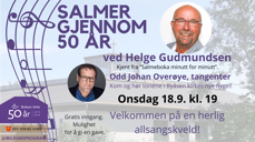 Salmer gjennom 50 år ved Helge Gudmundsen onsdag 18.9. kl. 19!