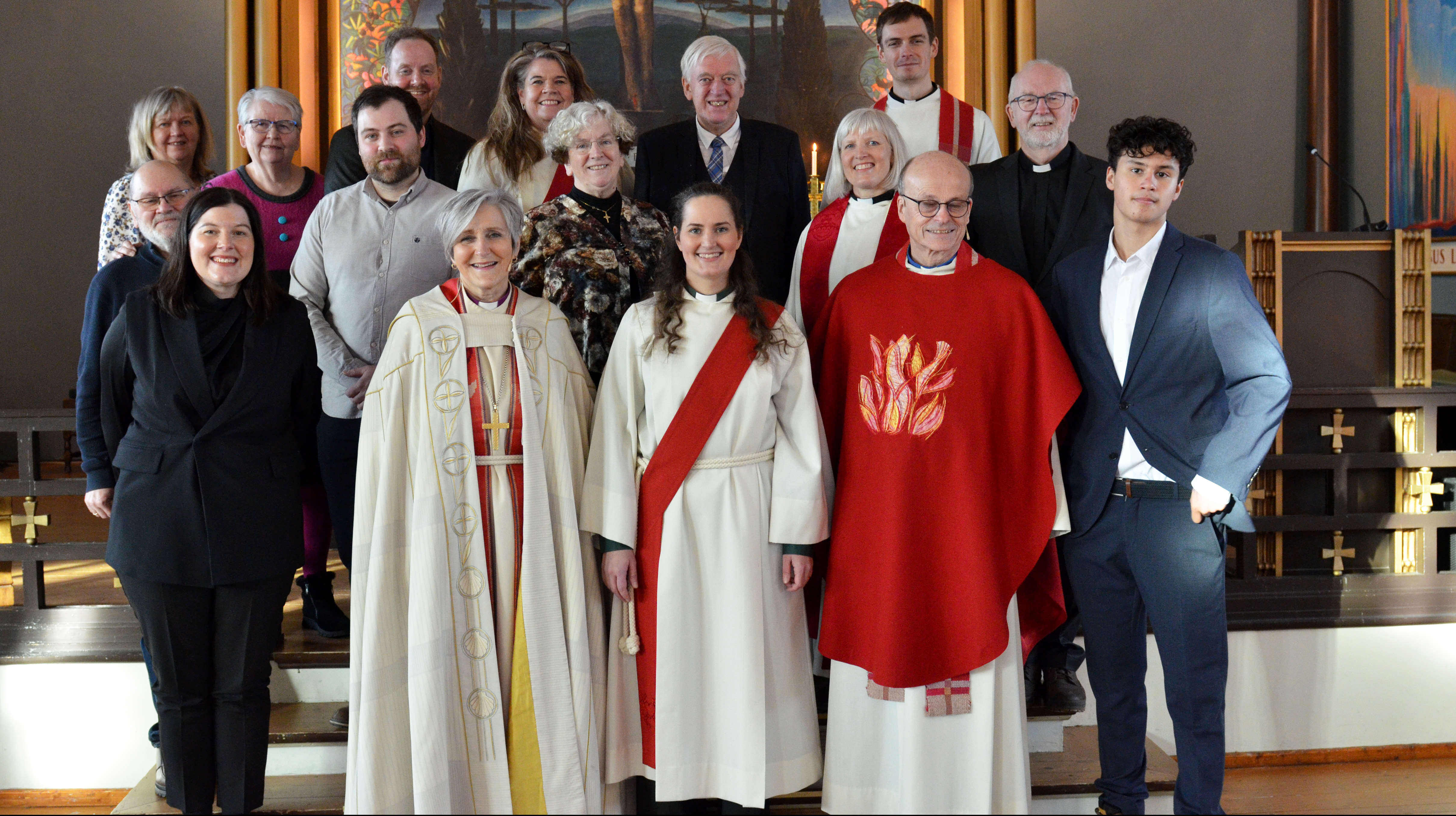 Medvirkende under vigslingsgudstjenesten i Ranheim kirke: Bak fra venstre: Lisbeth Nygård, Astri Slim, Arne Reidar Vik Selven, Inger Helen Nygård, Hans Skjelbred og Joakim Skousgaard Johnsen. Midtre rekke fra venstre: Nikolay Kostov, Sturla Hauge Nilsen, Brit Skjelbred, Bodil Slørdal og Stein Ellinggard. Foran fra venstre: Ingrid Wulvik, biskop Herborg Finnset, Marie Sætherskar Hauge, Skule Bjørnstad og Viktor Joel Hauge Gonzalez.