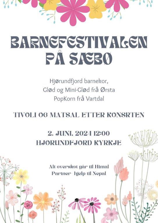 27.5.2024Velkommen til Barnefestival på Sæbø komande søndag, 2.juni kl 1200!