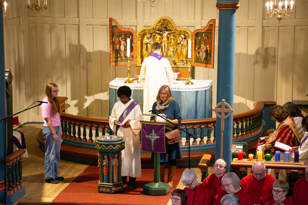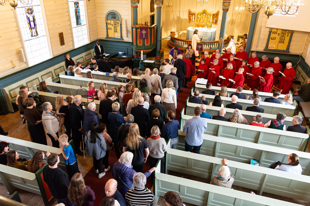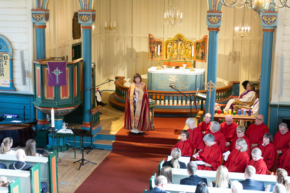 På gudstenesta fekk vi høyre både barnekoret GLØD, Ørsta kyrkjekor, sopran Karen Rosenberg Olsen og fiolinist Leiv Arne Nydal. Biskop Ingeborg Midttømme heldt preika og mange løna og uløna medarbeidarar tok del.