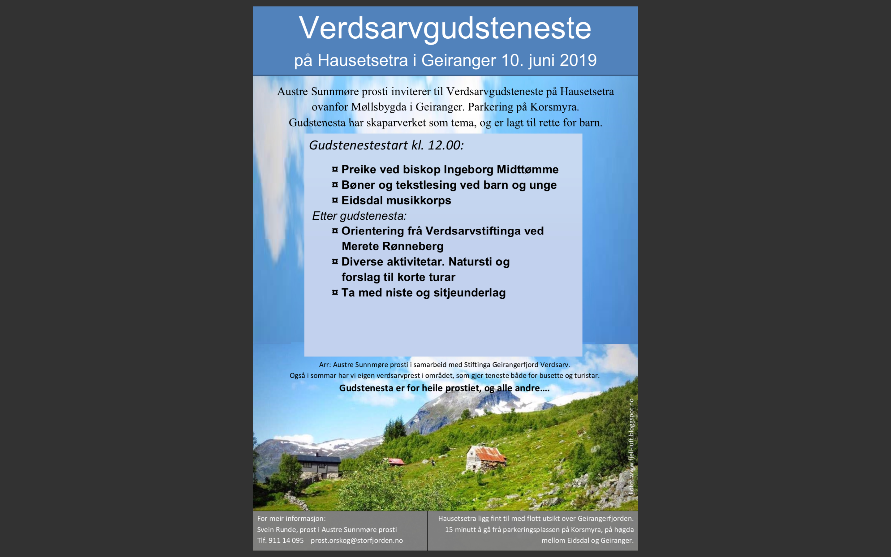 Verdsarvgudsteneste på Hausetsetra i Geiranger 10. juni 2019