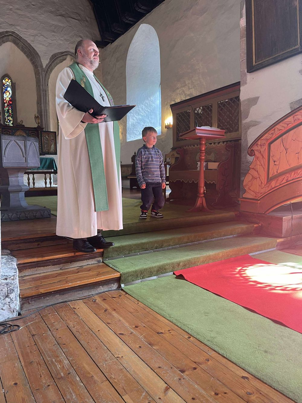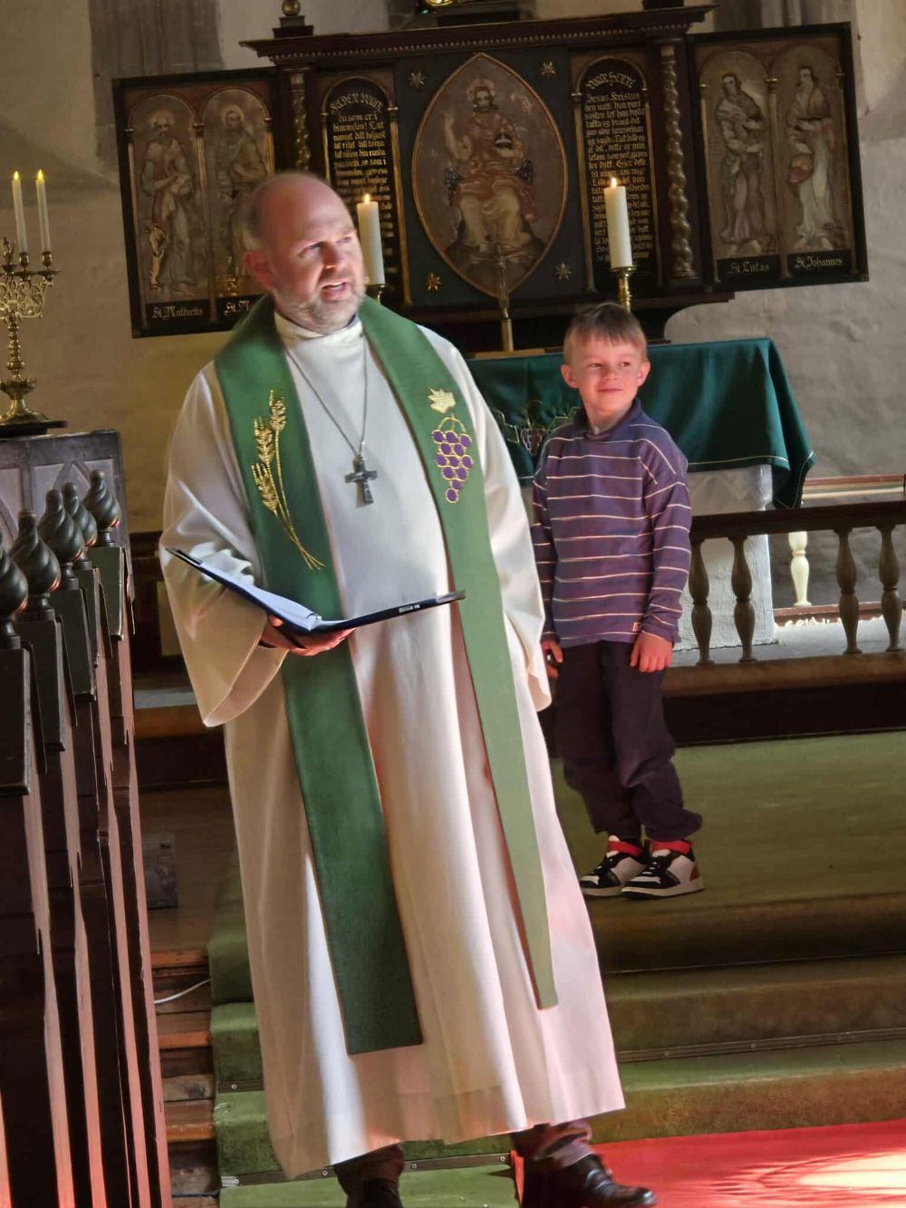 Bilde frå skulestartsgudstenesta i Vangen kyrkje ved prost Kjell Olav Høstaker Nordheim. Organist Freek Ypma spelte flott musikk. Før gudstenesta var det 6-årssamling og etter gudstenesta var det kyrkjekaffi.