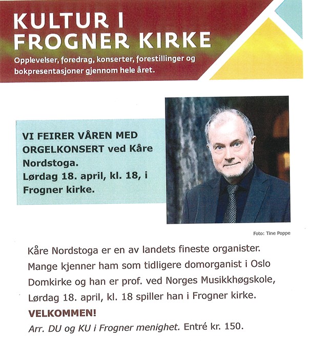 Vi feirer våren med orgelkonsert ved Kåre Nordstoga i Frogner kirke.