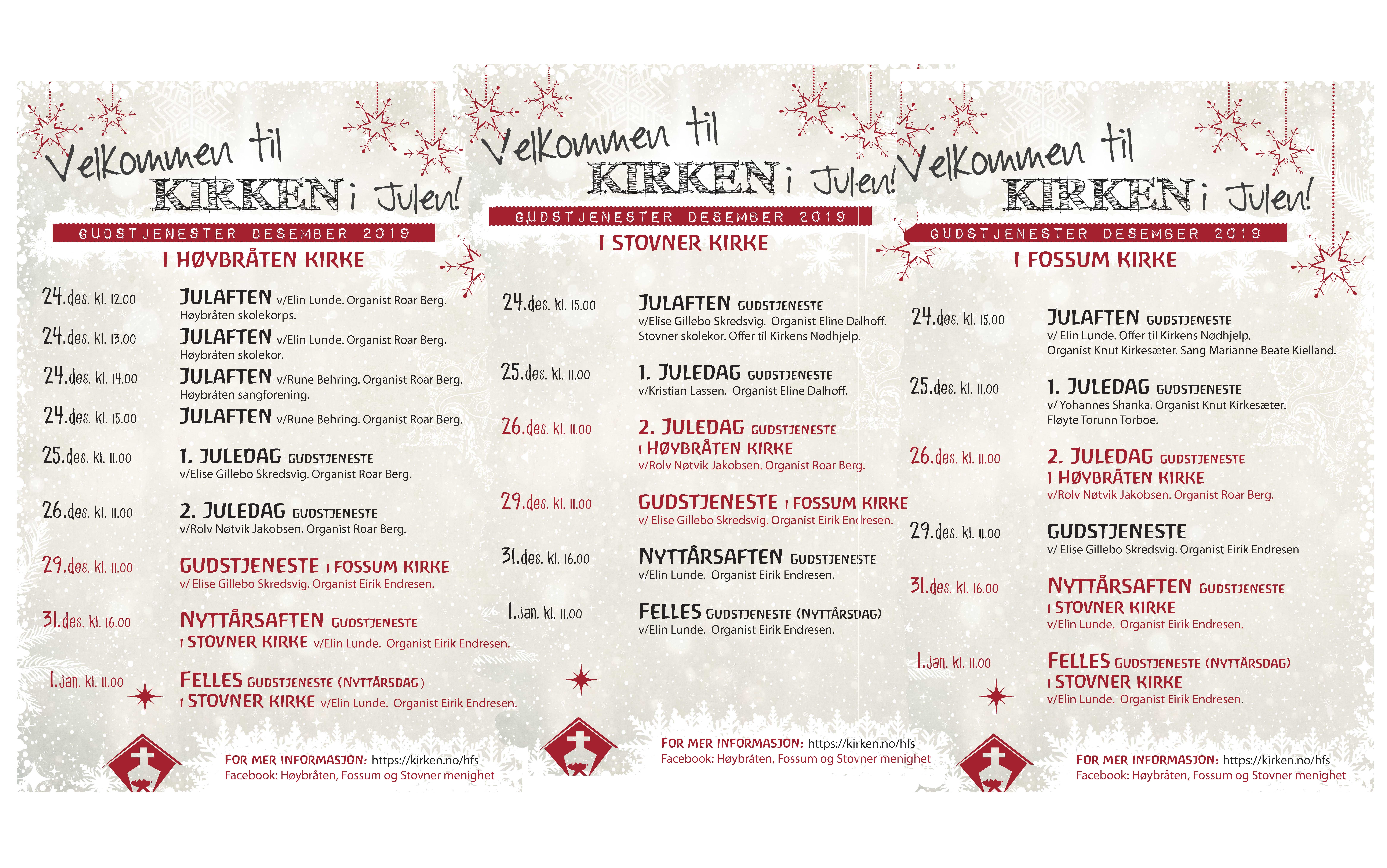 Jul i Høybråten, Fossum og Stovner menighet
