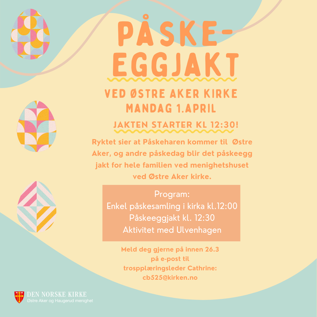 1.3.2024Påskeeggjakt ved Østre Aker kirke 1. april, jakten starter kl. 12:30!