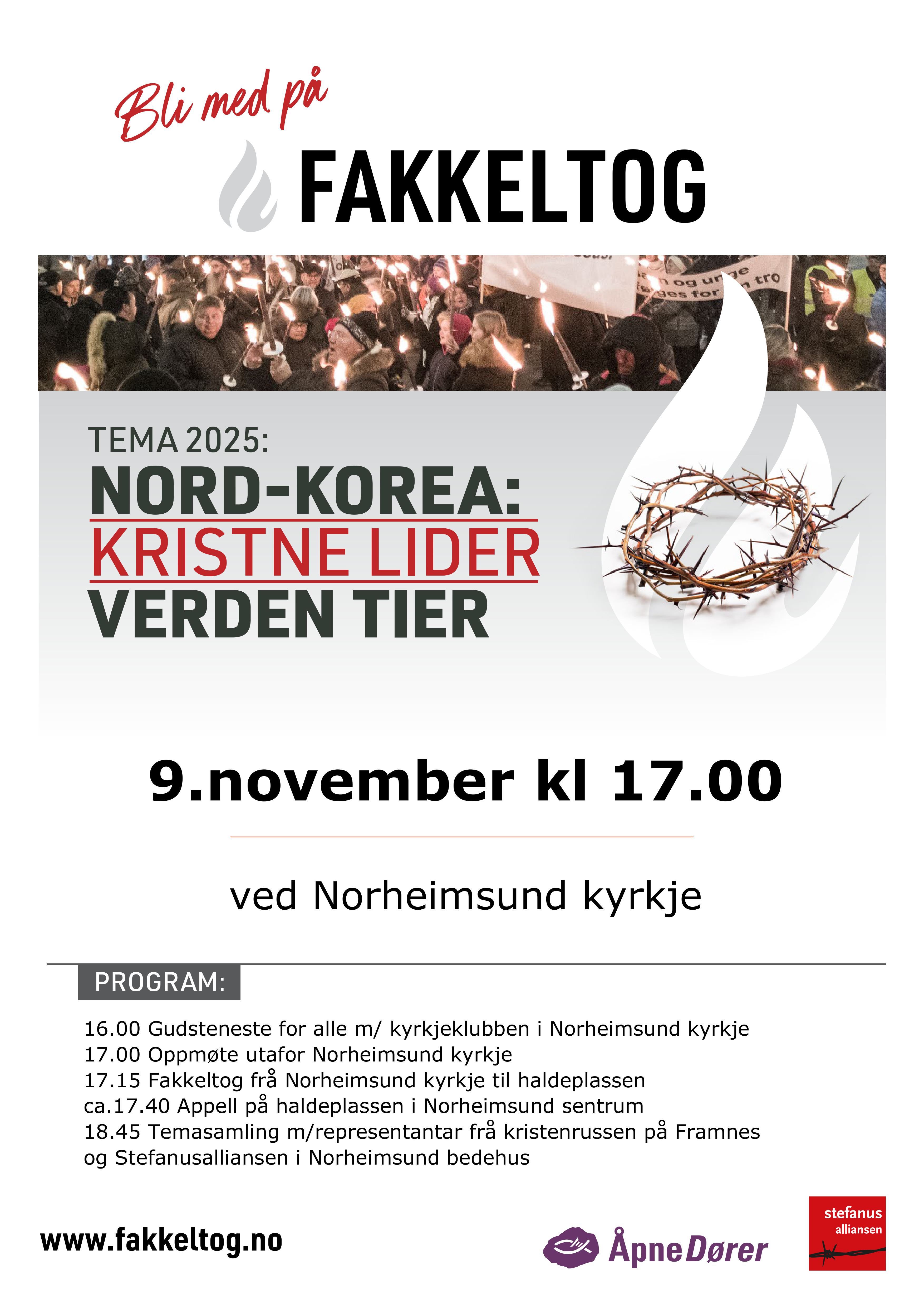 Bli med i fakkeltog frå Norheimsund kyrkje 9. november