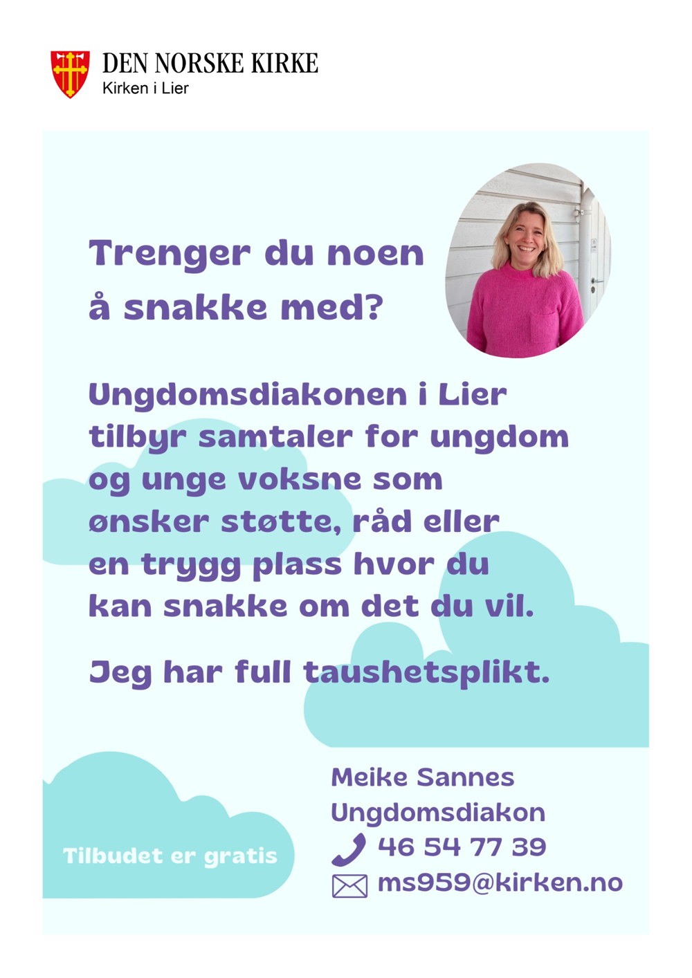 Meike er en som er lett å snakke med og har alltid et smil på lur. Hun har taushetsplikt så her er det trygt å snakke om hva som helst.