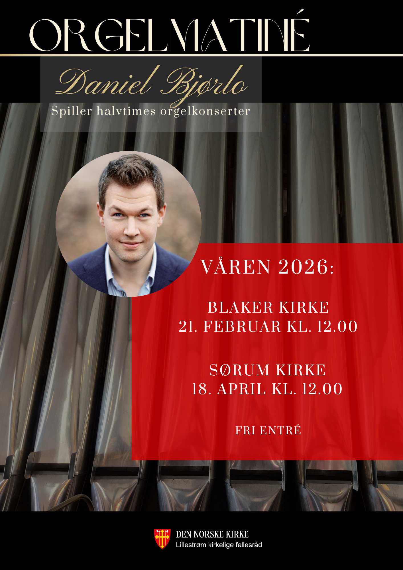 Er du hjemme i vinterferien? Ta gjerne turen til Blaker kirke for en musikalsk halvtime. Blaker kirkes egen kantor, Daniel Bjørlo, inviterer til orgelmatiné med musikk av blant annet den store mesteren Johann Sebastian Bach, Johannes Brahms og Felix Mendelssohn.
