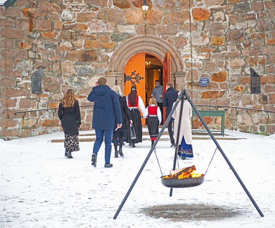 Utegudstjenester ved inngangen til Skedsmo kirke