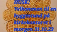 Vaffel på kirkekontoret 31.11.23 kl. 11.30-13.00