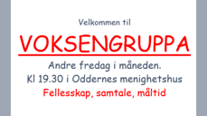 Velkommen til samling med Voksengruppa 10. oktober kl. 19.30 i Oddernes menighetshus.