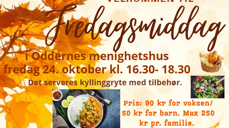 Velkommen til ny fredagsmiddag. Vi serverer kyllinggryte med tilbehør fredag 24. oktober.