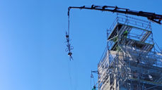 12.6.2023Første steg er bygging av stillas, og det vert sett opp byggegjerde rundt kyrkja.
