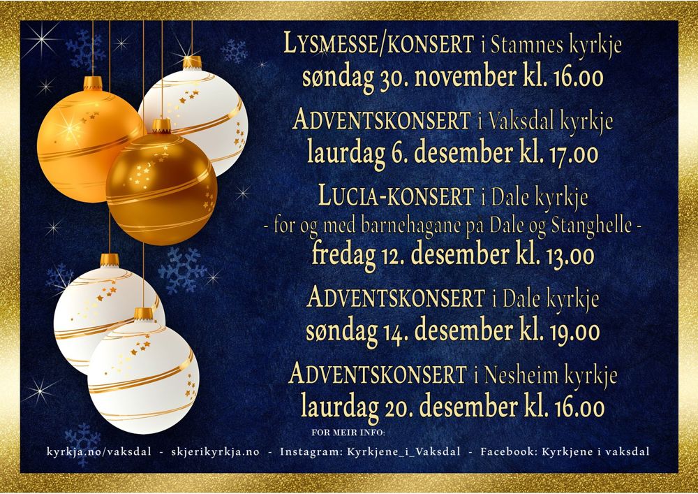 Adventskonsertar i kyrkjene i Vaksdal 2025
